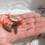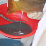 Los ejemplares reproductores se encuentran alojados en estanques bajo estricto control de agua y alimentación. El procedimiento de la captura se hace sin alarmar el cardumen para evitar que se dañen entre sí.